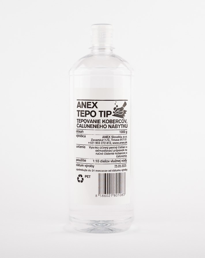TEPO – TIP - Vysokopenivý čistiaci šampón na koberce, podlahové krytiny a čalúnený nábytok, vhodný pre ručné i mechanické čistenie. Čistí všetky druhy kobercov. Obsahuje látky s vysokou penou, ktorá preniká hlboko do vlákien a zanechá koberce čisté. Rozjasní farby čistených textílií.